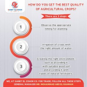 Our company follows the latest farming methods, and it has a large storehouse equipped with refrigerators for packing and storing vegetables, fruits, flowers and plants under the supervision of highly qualified group of specialists in the field of agriculture.
